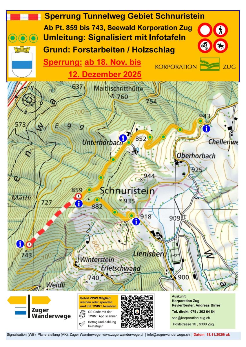 Sperrung der Korporation Zug, Tunnelweg Gebiet Schnuristein