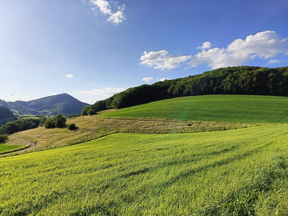 Ab der Bushaltestelle Hard, oberhalb von Erlinsbach, laufen wir zum Aussichtspunkt Wasserflue, steigen hinauf zur Salhöhe und geniessen nochmals den Blick sowohl südwärts als auch in den Schwarzwald. Danach beginnt der Abstieg durch Wälder und über Felder zum Räbenchopf, vorbei an verschiedenen Bauernhöfen weiter bis nach Wittnau im Jurapark.